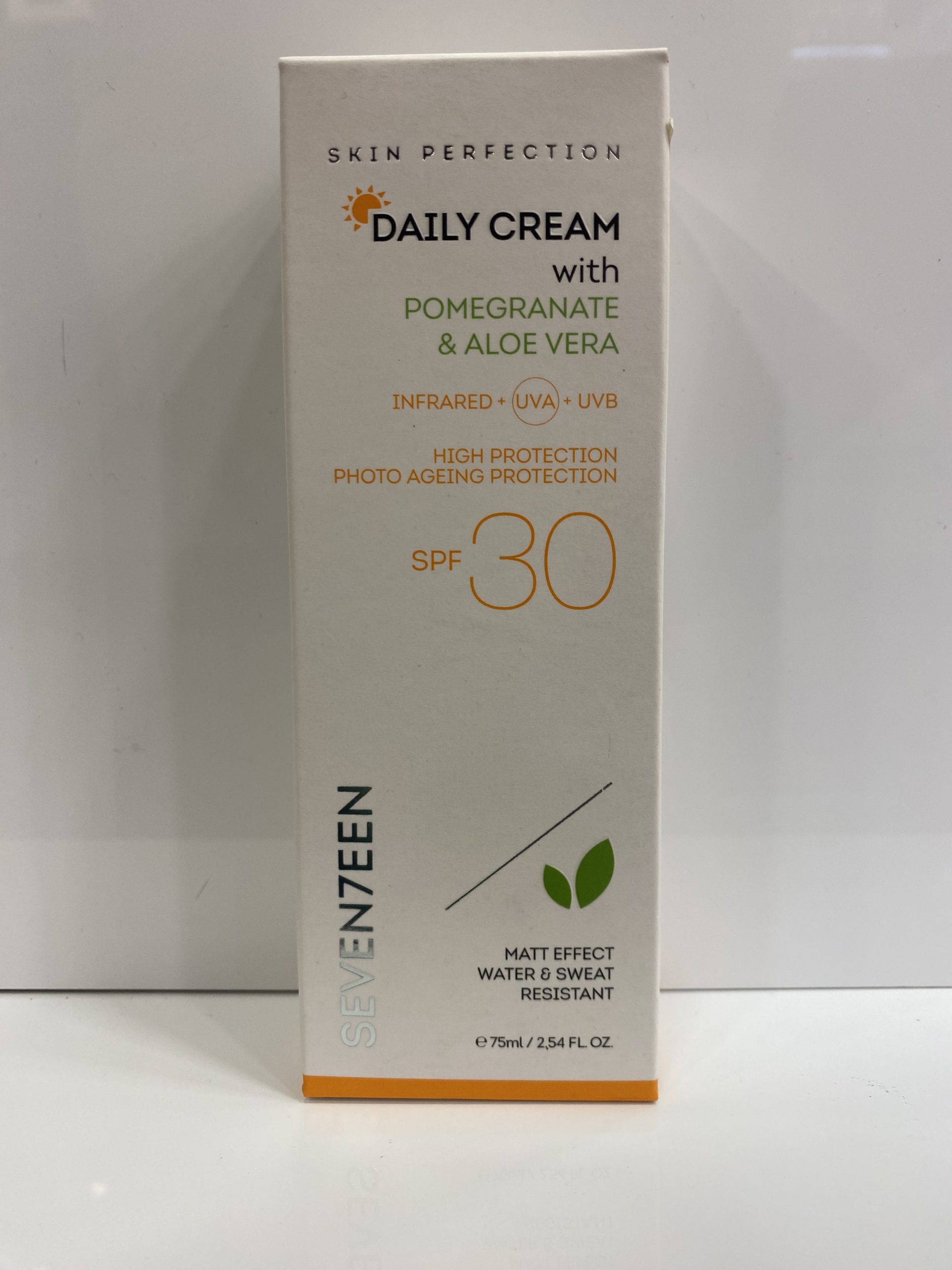 Φόρεσε την Daily Cream SPF 30 το πρωί, και δεν χρειάζεται να φορέσεις make up! Το ελαφρύ της χρώμα ταιριάζει σε όλους τους τόνους επιδερμίδας και έτσι, η επιδερμίδα σου παραμένει ακόμα πιο ενυδατωμένη και φρέσκια χωρίς να επιβαρύνεται από τη χρήση make up! Χάρη στα εκχυλίσματα Ροδιού και Aloe Vera, η Daily Cream SPF 30 ενυδατώνει την επιδερμίδα σου χωρίς να αφήνει ίχνη λιπαρότητας και παράλληλα προλαμβάνει την εμφάνιση ρυτίδων και δυσχρωμιών. Παράλληλα, το φίλτρο SPF 30 της κρέμας παρέχει εξαιρετικά υψηλή προστασία κατά της φωτογήρανσης και απορροφά το 97% της ακτινοβολίας. Η Daily Cream SPF 30 θα σε συνοδεύσει παντού, στον καφέ, στο γραφείο ή ακόμα και στο γυμναστήριο μιας και είναι ανθεκτική στο νερό!